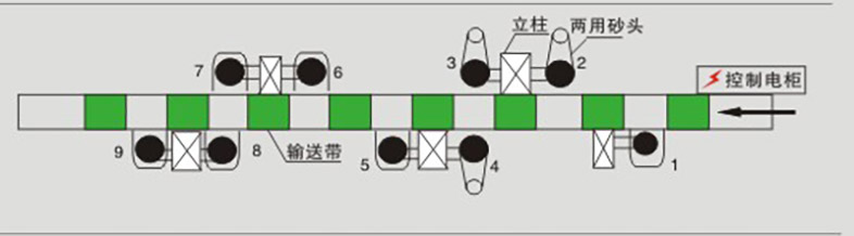 ●工件左右采用轮式侧压输送,有效防止工件在砂削过程中左右摆动,并可校正工件左右弯曲现象。