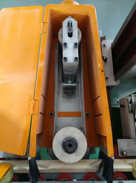 5.采用多点分段多角度压料方式,在顺利输送各种表面异形工件同时,防止工件左右摆动,并纠正工件左右弯曲,由于所有压料位均为橡胶材质,因此,能有效的避免对工件表面的摩擦损伤。